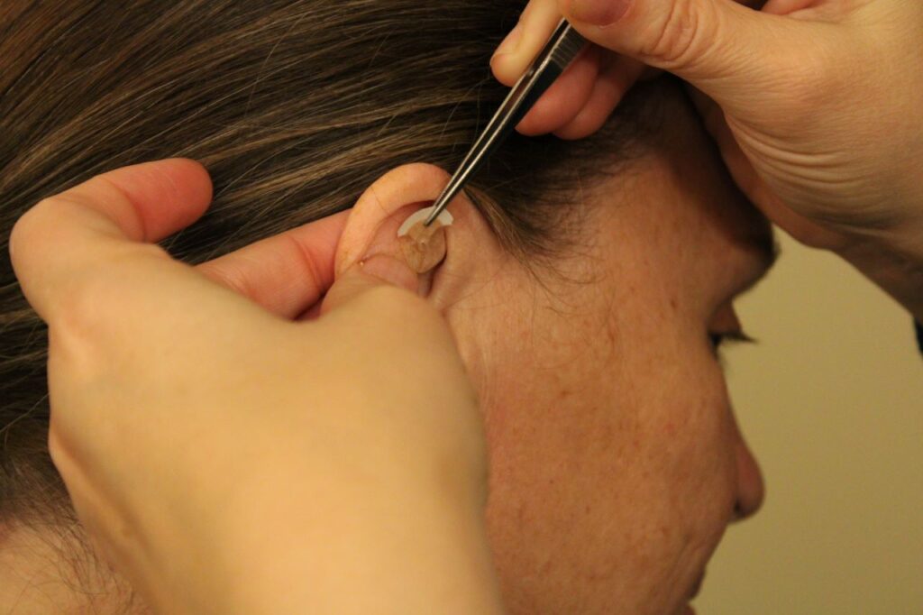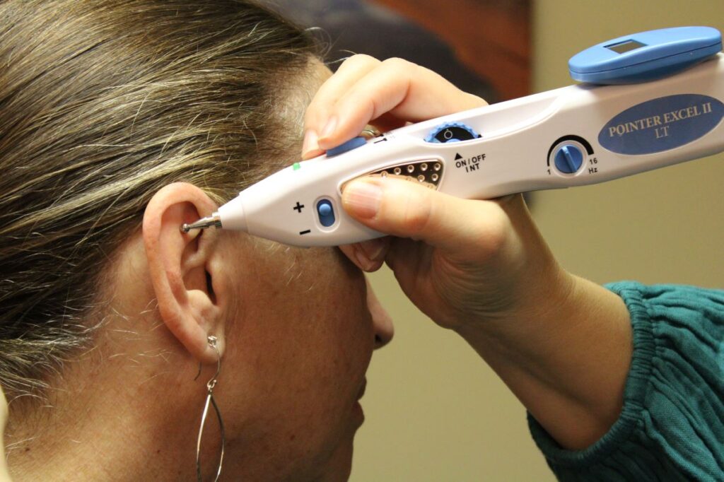 Acupuncture of the ear – may include ear seeds, Pyonex stick-on needles, or ASP puncture needles which may be worn for 3-4 days to reinforce a treatment