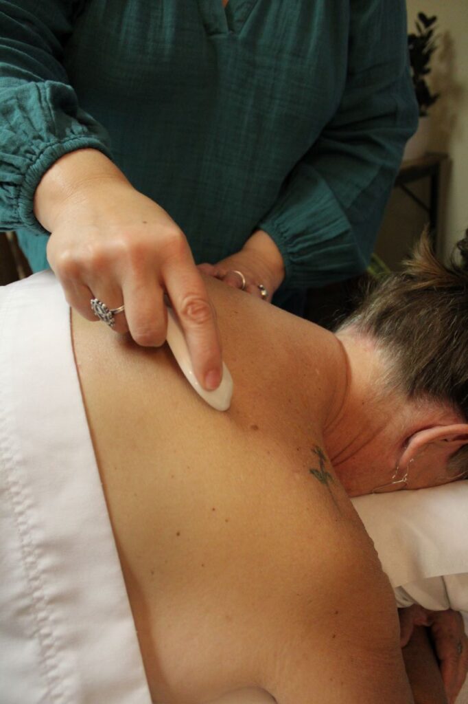 Scraping of the skin to enhance blood flow and move fascia and connective tissues to provide pain relief – may also involve use of a topical liniment